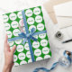 A wrapping paper designed with a white dot pattern on a green background and name. Customise the wrapping paper with your special name or text among other options.