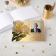 Personalise the elegant White Double Daffodils Celebration of Life Memorial Guest Book for attendees at your death tribute or funeral service and wake to sign. Customise it with the name of your deceased loved one, personal picture, birthday and date of death in gold foil font text. This custom flowery guestbook features a digitally painted floral photograph of white double narcissus flower blossoms on green stems with a beige cream coloured background. Unique inspo or idea for a March, April or May spring season event.