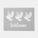 White dove bird on grey doormat