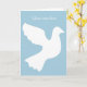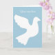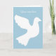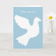 White dove greeting card with custom message. Add your own inspirational national text on the front and inside. Customizable background color. light blue. Peaceful pigeon / dove bird silhouette design with stylish typography. Sympathy theme, death, condolences, in loving memory of, religious, care and concern, peace, injuries, faith etc.