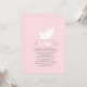 A lovely religious invitation featuring a white dove with a ribbon against a soft, pink background. Perfect for a girl's First Communions, Confirmations, Baptisms, and Christenings. (<a href='https://www.freepik.com/free-vector/humanitarian-background-with-peace-symbol_897046.htm'>Designed by Freepik</a>). <br/><br/>The card is easy to customise with your wording, font and font colour.<br/><br/>Not exactly what you're looking for? All our products can be custom designed to meet your needs at no extra charge.<br/><br/>Simply contact us at askcottonlamb@gmail.com.<br/><br/>Coordinating products available: Just ask us!