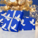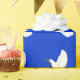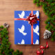 A beautiful image of a white dove flying with a sprig of greenery on a deep blue background. This would be perfect to wrap your Christmas gifts for family and friends.