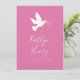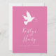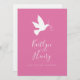 White flying dove with pink ribbons graphic art wedding invitation. Personalise with your own wedding names, wedding date and other event details.. Oher matching items available. Original art and design by Sarah Trett for www.mylittleeeden.com