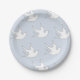 white doves on blue paper plate