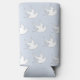White doves silhouette pattern on blue seltzer can cooler