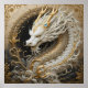 Elegant white golden Dragon Arts with majestic golden horn and diamond in the for head in canvas museum styles.