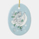White Dragon Roses Snowflakes Blue Ceramic Ornament