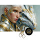 Elevate your next project with this striking white dragon and armoured warrior design, blending steampunk detail with ethereal fantasy. Rich in gold filigree and mechanical elegance, this decoupage tissue paper is perfect for fantasy furniture makeovers, junk journals, and DIY crafts. Add mythical beauty and metallic charm to your creative work with this high-impact art paper.