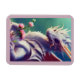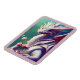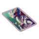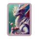 This adorable magnet shows a white mythical dragon holding a bouquet of pink flowers.