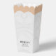 This white wedding dress popcorn favour box features a charming design shaped like a wedding dress, adding a unique touch to your celebration. Perfect for holding popcorn or other treats, it can be personalised with your event details. Ideal for weddings, bridal showers, or engagement parties, it makes a fun and memorable favour for guests. Great for brides, bridesmaids, and wedding party members!