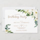 White watercolor floral birthday party invitation. Gold text.