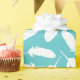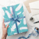 Add a light and airy touch to your presents with this feather print wrapping paper. This pattern features illustrations of white duck feathers against a teal or aqua blue coloured background.