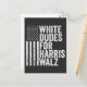 White dudes for Harris Walz, political support, election 2024, Democratic voters, Kamala Harris, Tim Walz, political campaign, voter base, election slogan, political message, Democratic party, campaign supporters, Harris Walz 2024