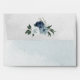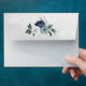 Beautiful romantic white, dusty blue and navy blue flowers with green leaves botanical wedding envelope.