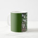 A Classic 11oz Mug , with a Beautiful Picture of White Dwarf Creeping Daisies ,on it with a Dark Green Background.