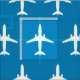 White E175 Jet Aeroplane Pattern on Blue Fabric