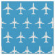 Perfect for making baby gifts, party shirts, home decor or for sewing projects, this bright blue fabric features a repeat pattern of white E-175 passenger jets.