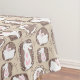 A cute tablecloth to use for your Easter dinner of comical white bunny rabbits on a tan and brown background