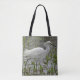 This tote bag not only helps you be friendly to the environment but it also allows you to take a hint of nature with you as you shop. This grocery bag features a photo of a white egret walking through the water among the bright green foliage. The long neck and legs of the egret help this bird to capture tiny fish and frogs in the water. Both sides of the tote bag feature the same photograph.