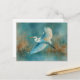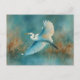 A graceful white egret mid-flight over a peaceful marsh, painted in soft watercolor tones of teal, cream, and earthy sienna. The gentle motion of the bird’s wings against the delicate background adds a serene, elegant feel.