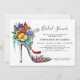 This elegant high heel shoe features delicate flowers, making it the perfect design for a bridal shower invitation card. The intricate details and feminine touch of the floral embellishments add a romantic and sophisticated flair to the overall look of the shoe. Ideal for a bride-to-be who appreciates timeless elegance and style, this shoe design is sure to set the tone for a memorable and special celebration.