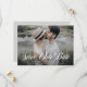 Save our date! Announce your wedding date to family and friends with this elegant save the date flat card. It features elegant flourish script with classic typography overlay. Personalise by adding names, date, venue, photo and other wedding details. This save the date announcement is perfect for any wedding theme and season. This design is available as a flat card, magnet and postcard.