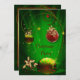 Green red and gold Christmas baubles and holly white elephant gift Christmas holiday party invitations.