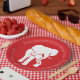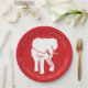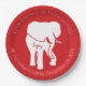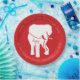 White Elephant on Red Background with custom circle text: White Elephant Gift Exchange Party @ The Williams Family, December 23, 2025, and custom centre text: Enjoy. You can change or delete all text, Unique White Elephant Christmas or Your Party Paper Plates