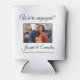 Announce your engagement with this elegant white can cooler, personalised with your photo and names. Featuring the cheerful phrase “We’re engaged!” in romantic black script, it’s the perfect party favour to keep drinks cold and spirits high. Ideal for engagement parties, showers, or casual celebrations, this cooler doubles as a meaningful keepsake for family and friends.