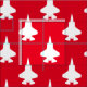 White F-35 Lightning 2 fighter jets fly in formation across this red fabric that is great for all your craft projects, from flight suit bags to party shirts and beyond! **Change the background colour from red to any colour of your choice using the "Customise it" button!**