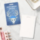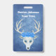 This name or identification badge is a misty mix of blue shades with a white fantasy deer head with large antlers and three pretty blue roses on top of its head. Customise your name and information with the templates.