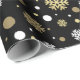 White Faux Gold Snowflakes Polkadots On Black Wrapping Paper