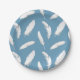 White feather print on medium soft shell pink - mixed media graphic design of white feathers, floating on a light denim blue background