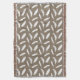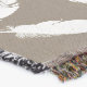 White feather print on taupe throw blanket