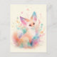 White Fennec Fox with Pastel Rainbow Ear Postcard