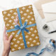 Wrapping paper with a white fleur-de-lis pattern on a matte gold background. Customisable. Modern, trendy, and elegant, it is a sophisticated classic that is perfect for any occasion.