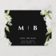 White Floral B/W Monogram Wedding Save the Date Postcard