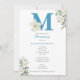 An adorable blue boy initial design Christening invitation with white floral. A cute design ideal for a baby boy's Baptism Christening. Matching stationery and décor can be viewed in this design's collection.