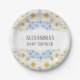 White Floral Blue Hydrangea Garden Baby Shower Paper Plate