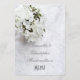 Chic pretty white flower floral brides bouquet on a traditional damask wedding dress wedding menu which will compliment your other bridal essentials. Perfect for traditional or winter weddings easily personalised with the bride and grooms names and menu to the templates to create your own unique feminine girly luxurious sophisticated and professional custom menu for your special marriage occasions, events and celebrations. Visit the PERSONALIZED_ WEDDINGS STORE for matching coordinated wedding suite sets. CUSTOMIZE to adjust the font size and position.