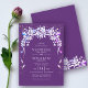 White floral cascading garland purple wedding Invitation. A beautiful white cascading garland adorns this wedding invitation with gold confetti.