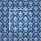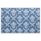 White Floral Damasks Custom Blue Background Fabric
