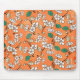 White Floral Design on Orange Mouse Pad