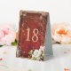 Gorgeous white botanical floral spray with sparse gold leaves over hanging this beautiful table marker. The scarlet red rustic background is such a rich classy look. We’ve outlined the number in a gold tone thin line twice. This is a lovely marker for your reception tables.. Trimmed in faux gold glitter to set the tone for romantic and classic elegance. Gold splashes finish off this pretty marker. Beautiful for any season.