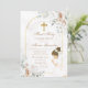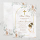 White Floral Gold Cross Girl First Holy Communion Invitation