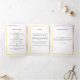 An elegant tri-fold program. A white background, a faux gold frame, burgundy florals and space for your photo. Personalise and add name, dates and your text.