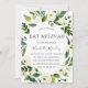 White Floral Green Wreath Modern Bat Mitzvah Invitation