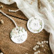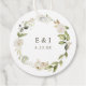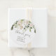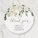 Soft and refined, these white watercolor floral round bridal shower thank you tags add a beautiful finishing touch to your celebration. The front features delicate white flowers with soft green sage foliage and “thank you” in elegant script, personalised with the future bride’s name. The back showcases a matching watercolor floral wreath with the couple’s initials and wedding date for a coordinated, modern look. Perfect as round bridal shower favour tags for gifts, treats, and party favours.
