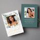 Elegant floral graduation announcements featuring your square photo framed in gold foil with watercolor white flowers, succulents, and green foliage. "Graduate" is displayed in a modern gold foil calligraphy script. Personalise the front of the white floral graduation announcement with the graduate's name, school name, and graduation year. The foil graduation announcement reverses to an additional photo with your personal message shown below. The 2 photo graduation announcement is perfect for both high school and college graduates.