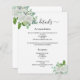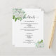 A modern, elegant wedding details/program/timeline. A white background, decorated with white watercolored florals and eucalyptus greenery. Personalise and add your names and wedding details. Black coloured letters.